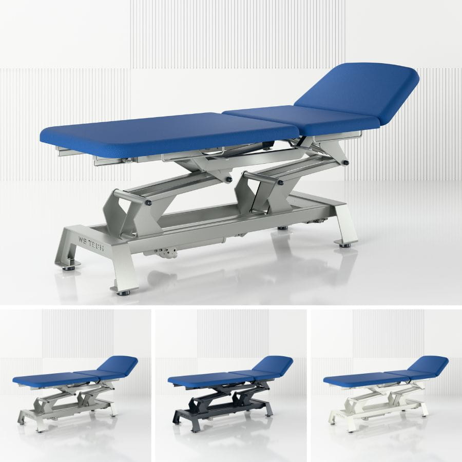 Stoły są konfigurowane i produkowane na indywidualne zamówienia. Mają Państwo szeroką możliwość wyboru wielu wariantów jak typ zagłówka, podłokietników czy szerokości leża. Koloru konstrukcji z opcją farby antybakteryjnej oraz koloru tapicerki z dwóch różnych palet. Sposobu regulacji jak pilot ręczny, pilot nożny czy rama sterująca. Wzmocnioną konstrukcję zapewniającą większe obciążenia do 200 kg. Wycięcie na twarz lub też nie.